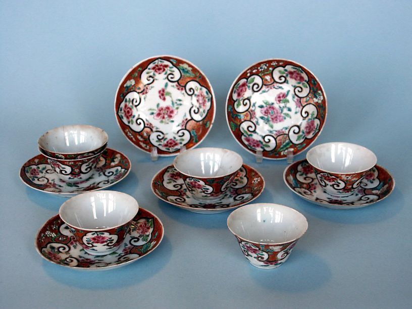 6 paar kop en schotels met decor van pioenrozen, famille rose