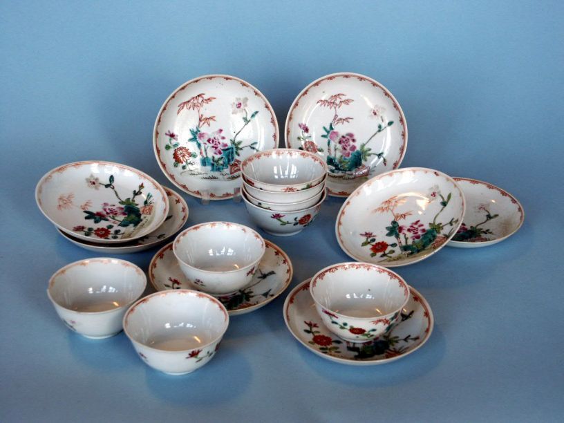 8 Paar kop en schotels met decor van florale motieven, famille rose