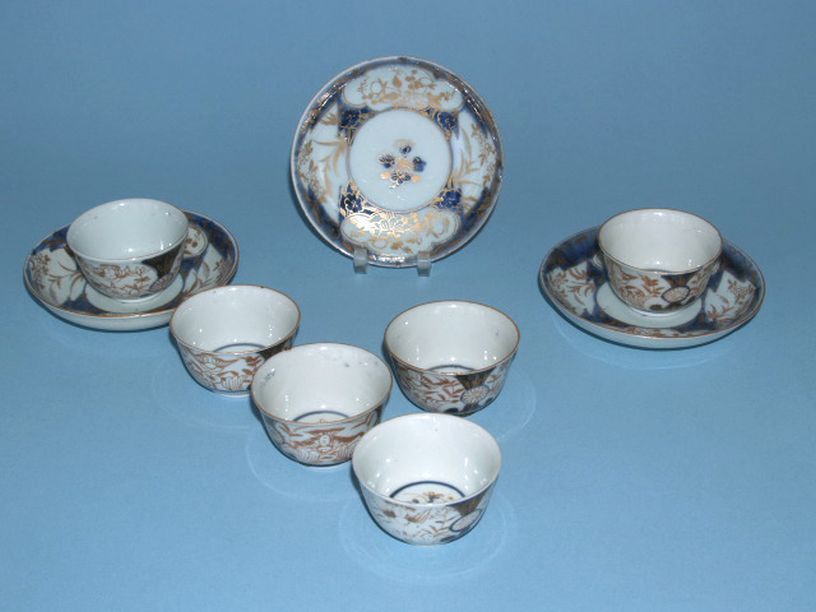 6 koppen en 4 schoteltjes met decor van panelen waarin florale motieven