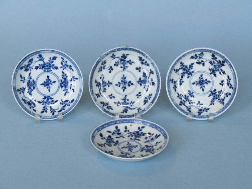 4 schoteltjes met decor van bloemmotieven in onderglazuur blauw