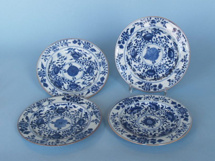 4 borden met decor van medaillon met bloemen en bloemranken