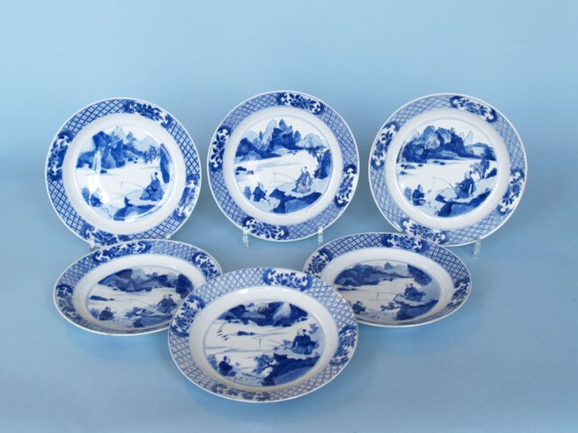 6 Borden met decor van rivierlandschap