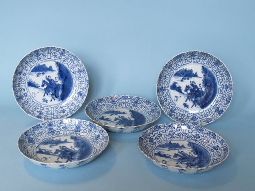 106 borden met decor van 2 krijgers te paard en 2 konijnen in rotslandschap
