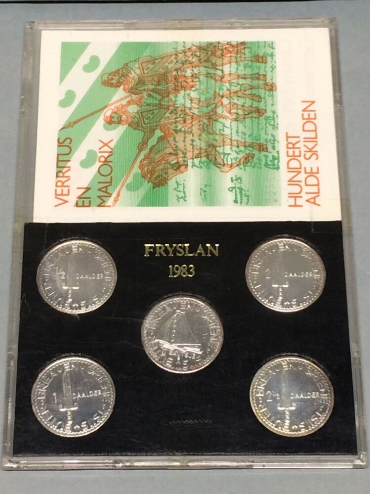 Muntenset met daarin 5 munten en 2 series van 3 stuks bankbiljetten