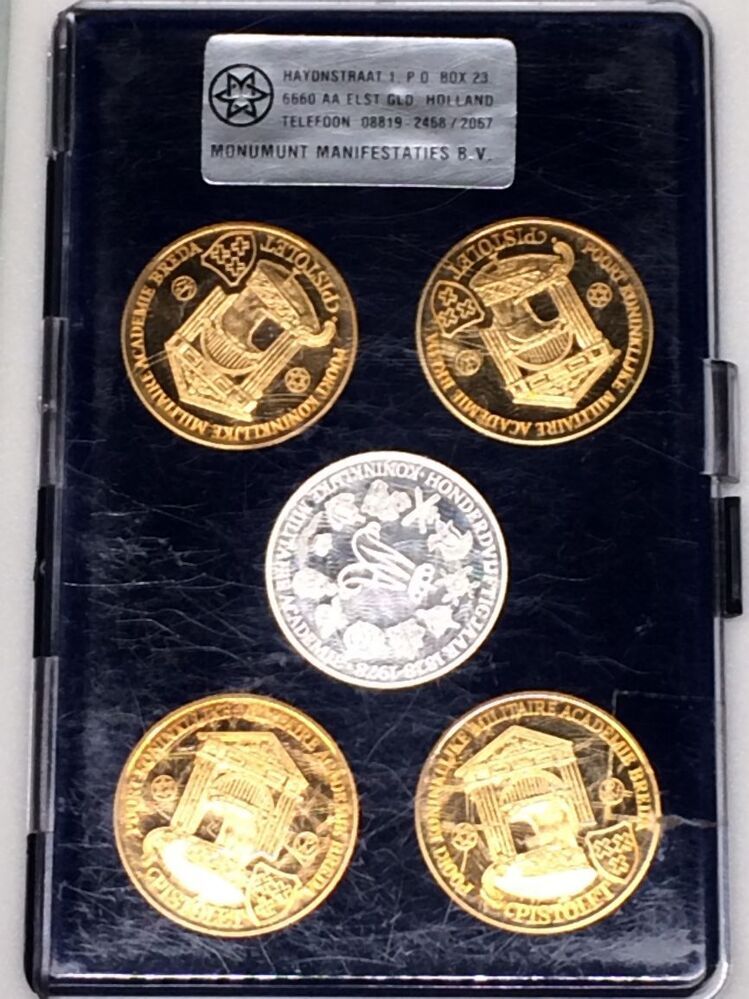 Muntenset met daarin 5 munten 10637.01 tot en met 10637.05 van de serie Koninklijke Militaire Academie 150 jaar