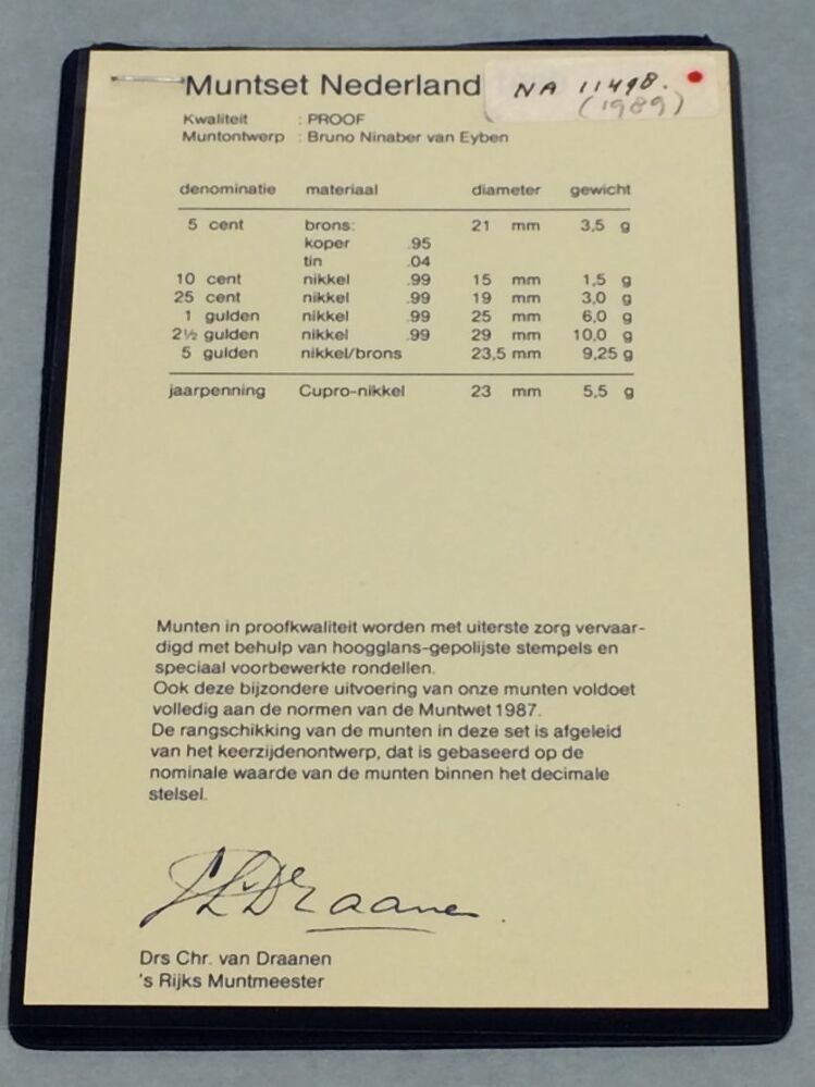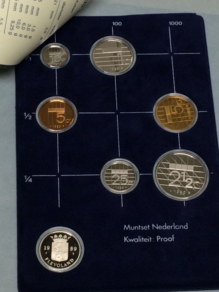 Muntenset met daarin zeven munten en een jaarpenning van 1989 van de Rijksmunt Nederland