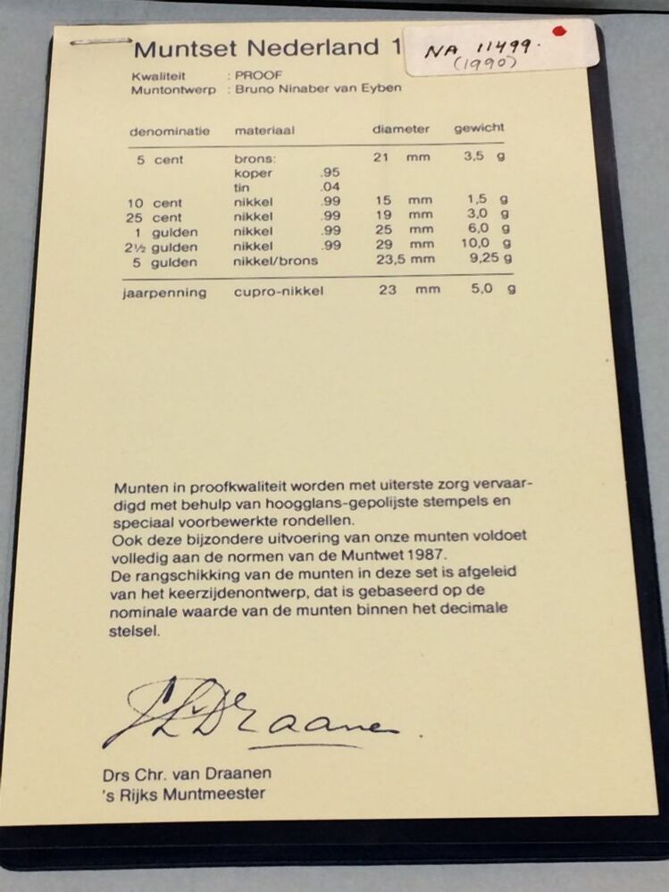 Muntenset met daarin zeven munten en een jaarpenning van 1990 van de Rijksmunt Nederland