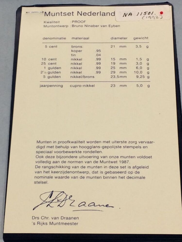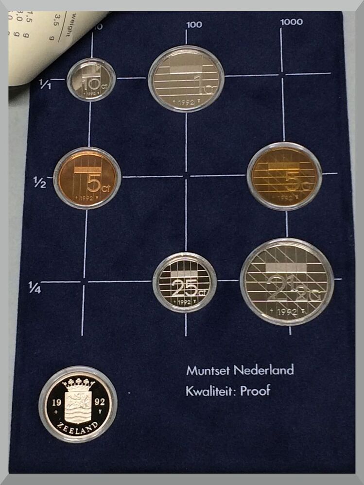 Muntenset met daarin zes munten en een jaarpenning van 1992 van de Rijksmunt Nederland