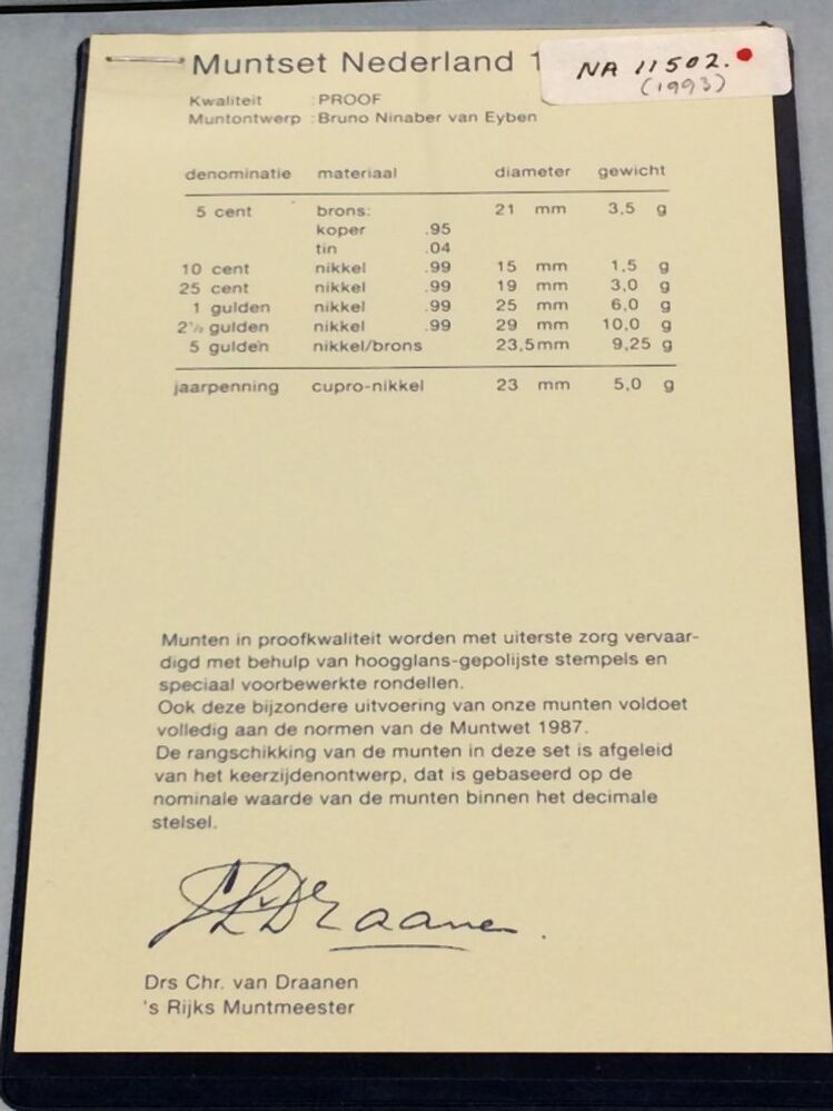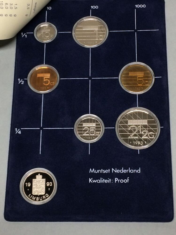 Muntenset met daarin zes munten en een jaarpenning van 1993 van de Rijksmunt Nederland