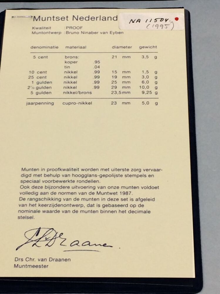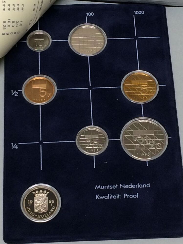 Muntenset met daarin zes munten en een jaarpenning van 1995 van de Rijksmunt Nederland