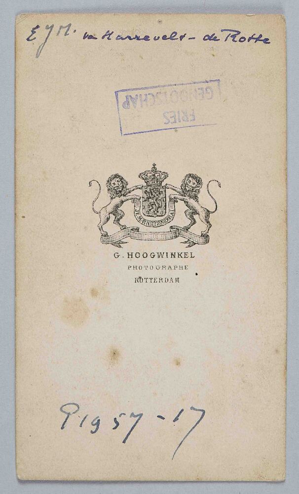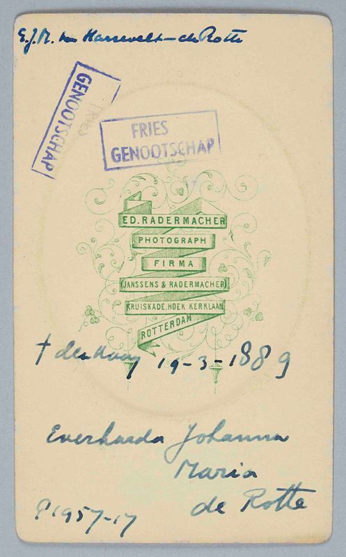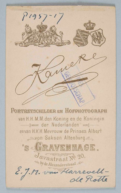 5 cartes-de-visite van E.J.M. van Harrevelt-de Rotte