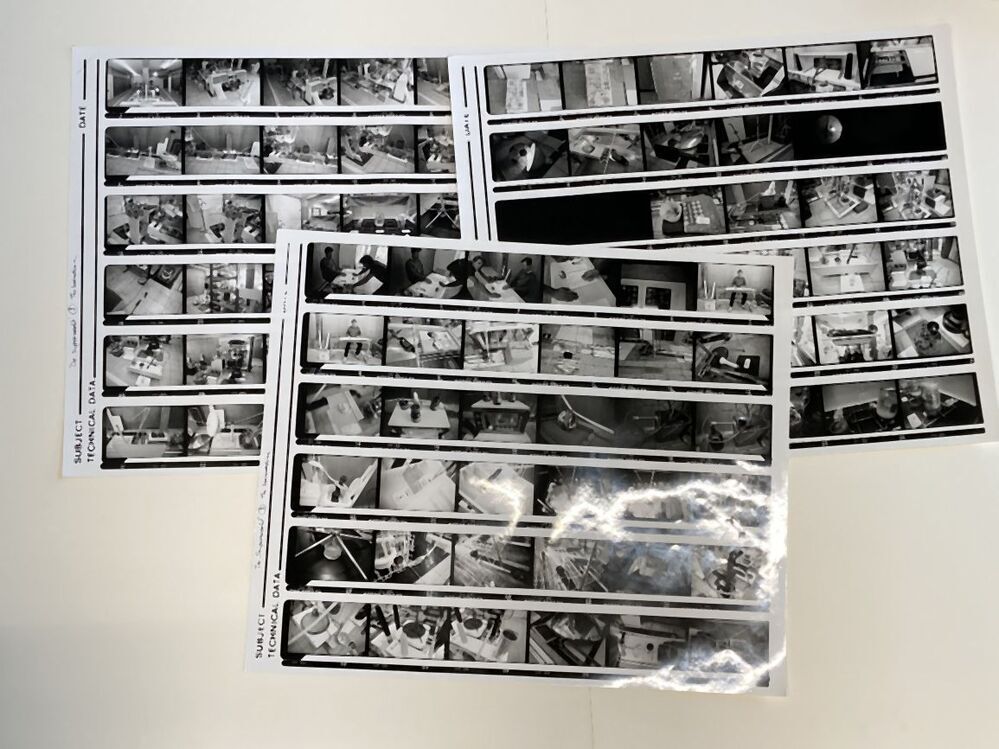 3 contactsheets, zwart-wit, titel: De supermarkt / The Grainmachine