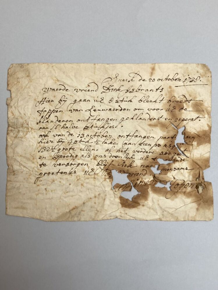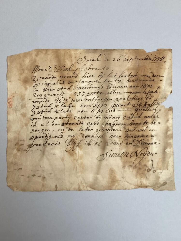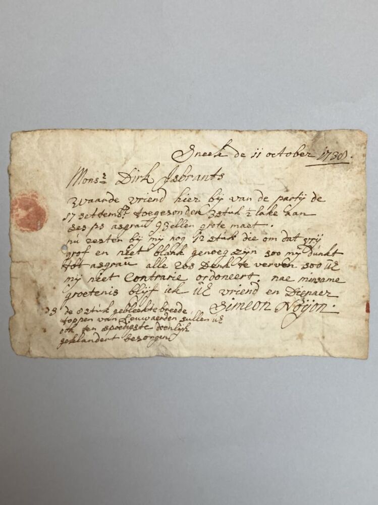 Drie brieven uit Sneek over het kalanderen, verven en persen van laken
