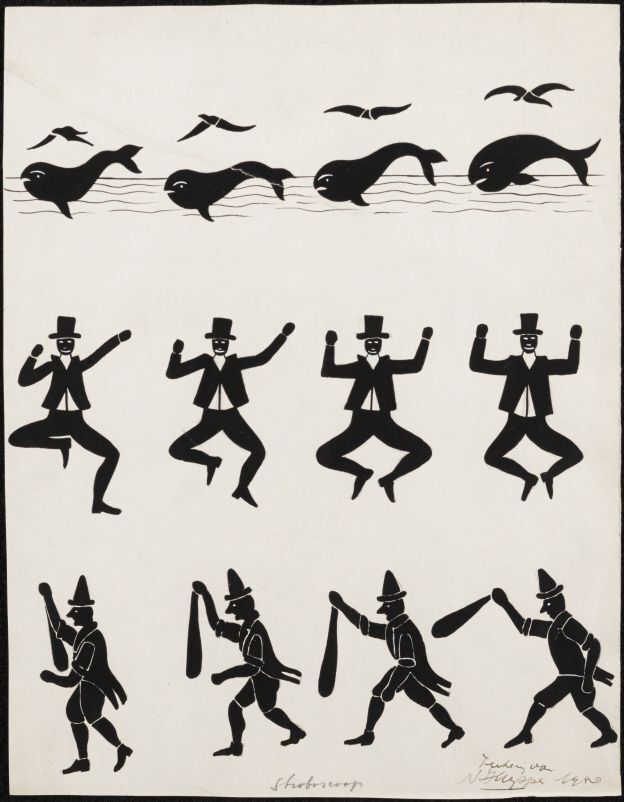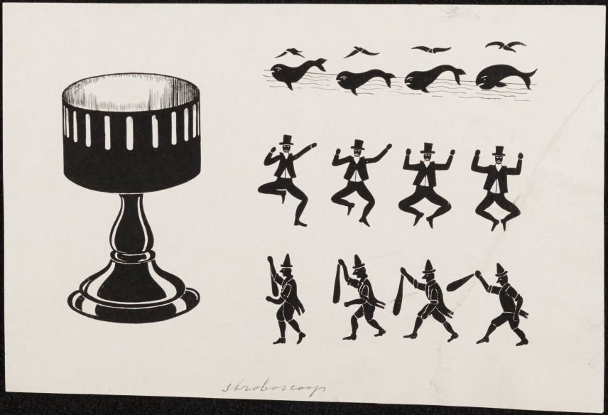Twee tekeningen, een reproductie van en een krantenknipsel over de stroboscoop