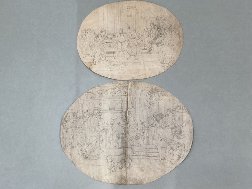 Twee sponsen voor een ovaalvormige tegelplaat
