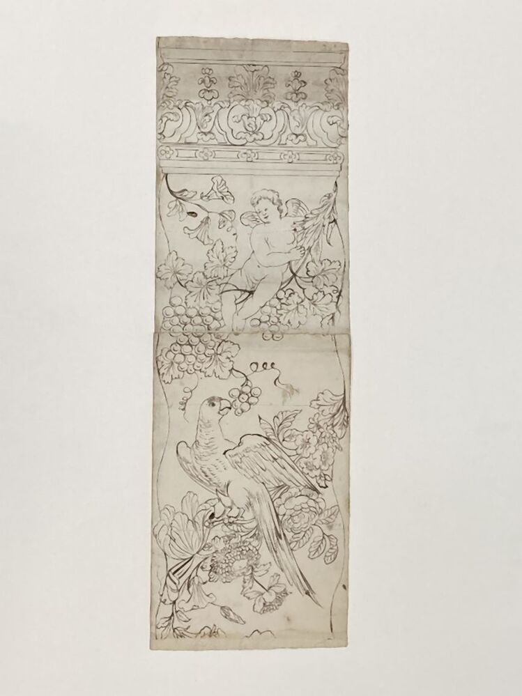 2 sponsen / ontwerptekeningen voor een tegeltableau met een pilaardecor