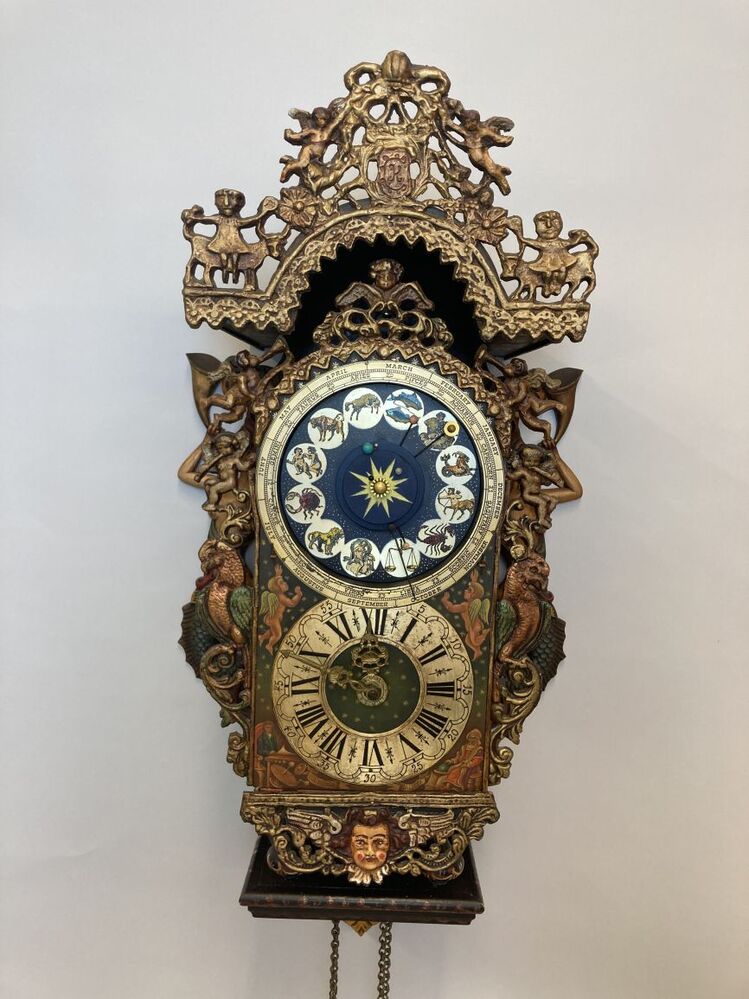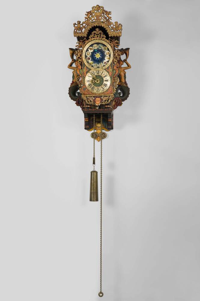 Een stoelklok is een hangklok waarbij het uurwerk met pootjes op een stoel staat. In Nederland zijn deze in de zeventiende en achttiende eeuw veel vervaardigd. Stoelklokken zijn nauw verwant aan de lantaarnklok. (Wikipedia) https://data.cultureelerfgoed.nl/term/id/cht/5cad3bb0-8818-420d-8129-17e10b3ec5b7