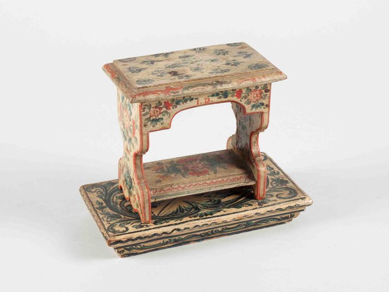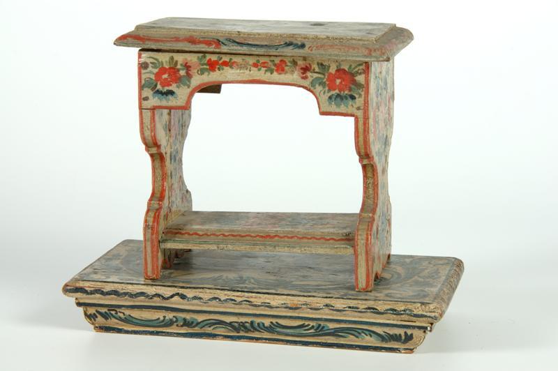 Vuurpotbankje met bijbehorend voetstuk versierd met arabesken en bloemen