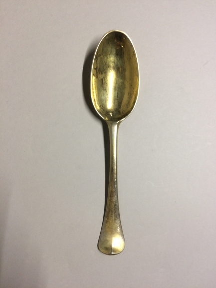 Zilveren lepel en vork (verguld) met de wapens Van Burum-Van Eysinga