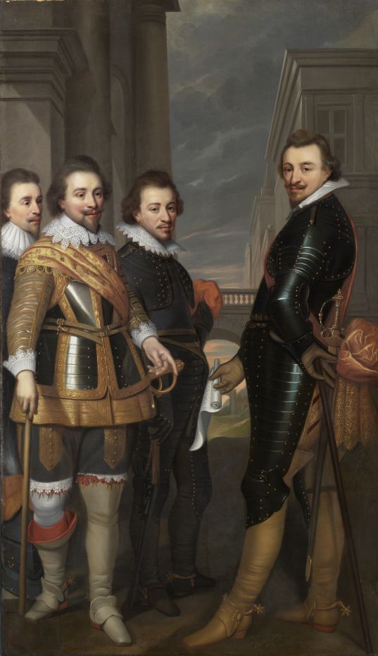 Groepsportret van vier kleinzonen van Jan de Oude van Nassau-Dillenburg: Albert van Nassau-Dillenburg, en de broers Johan Ernst van Nassau-Siegen, Adolf van Nassau-Siegen en Jan III van Nassau-Siegen