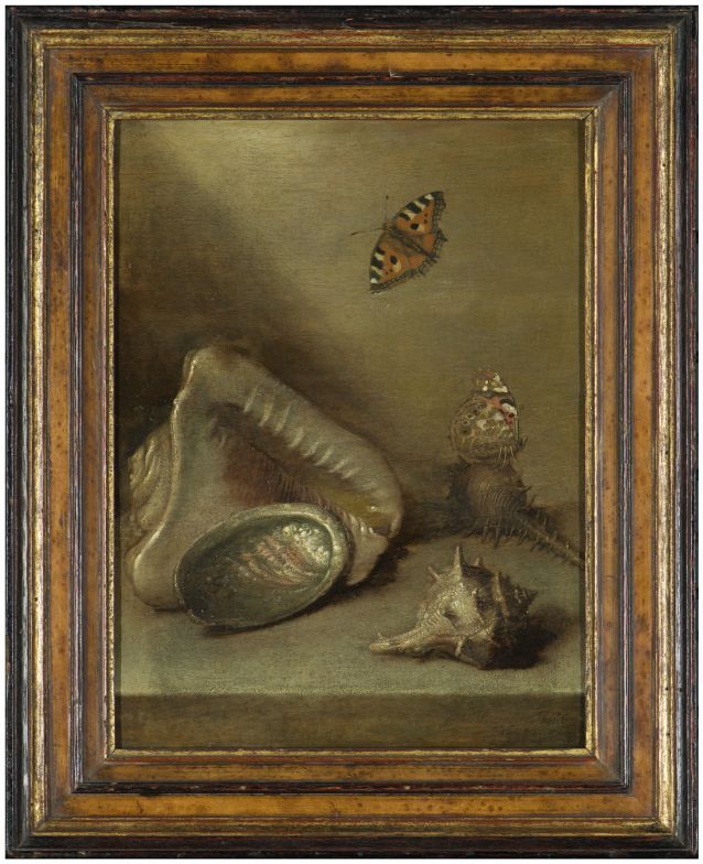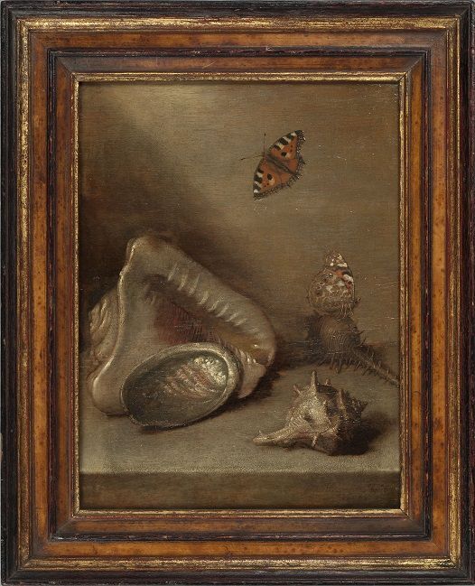 Stilleven met schelpen en vlinders
