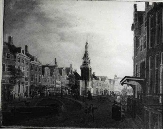 Gezicht langs Voorstraat te Harlingen met vele pijpen