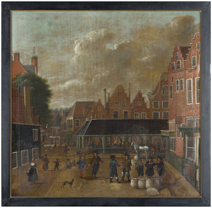 Gezicht vanaf Wortelhaven op Vismarkt te Leeuwarden met Koningsstraat