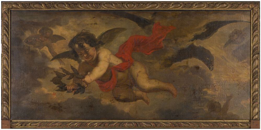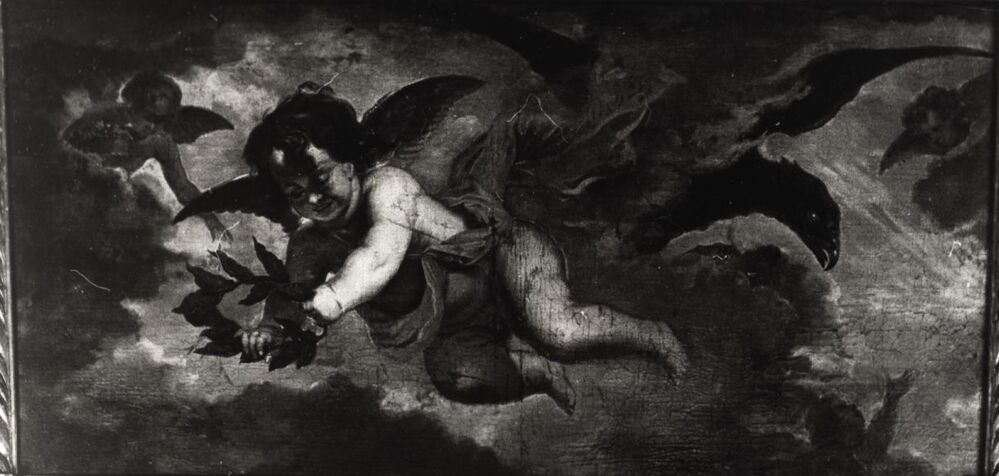 Allegorische zolderbeschildering met engeltje met lauwerkrans