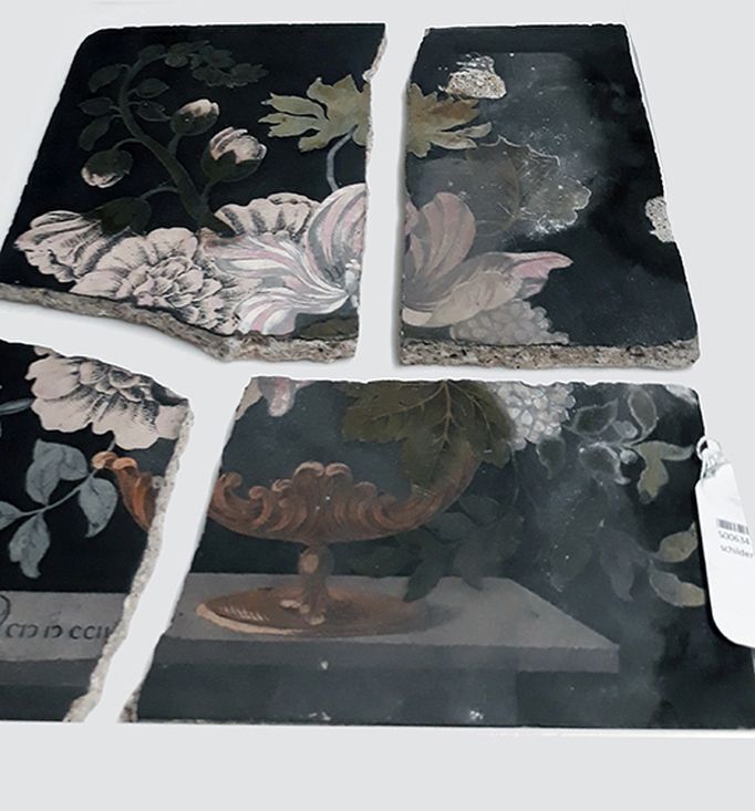 Stenen plaat beschilderd met een bloemboeket