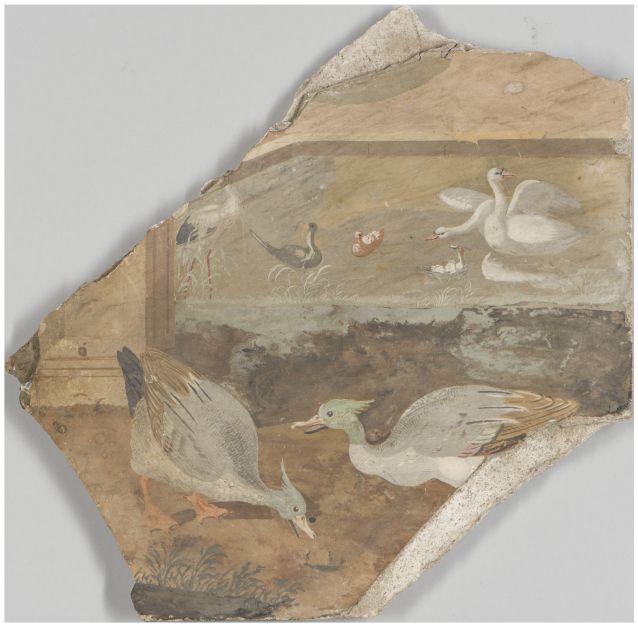 Fragment tafelblad beschilderd met vogels