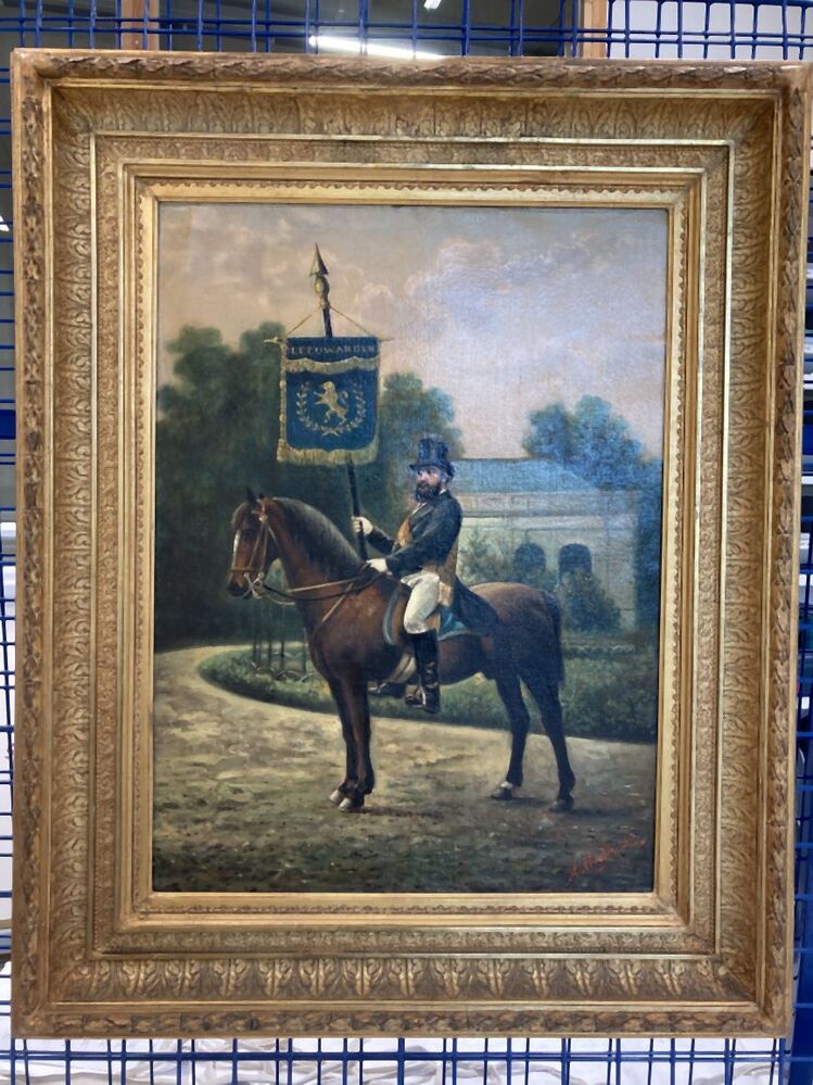 Portret van Adam Zelle als vaandeldrager van de erewacht te paard