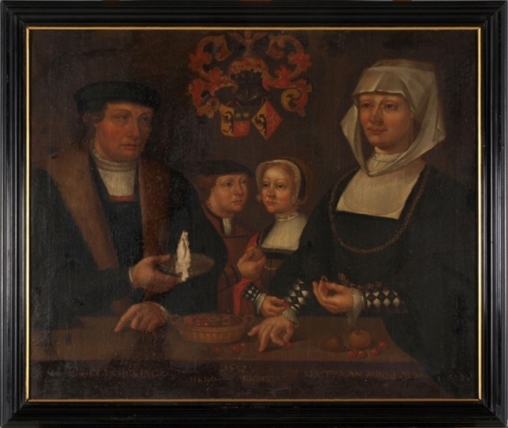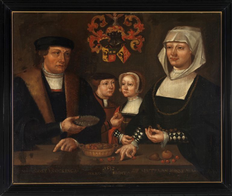 Groepsportret van Joost van Ockinga en Luts van Minnema en hun kinderen Hero en Richt