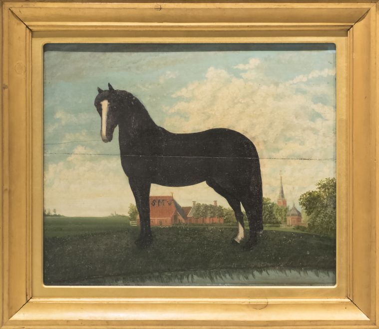 De hengst de Nette voor de boerderij van Sake Meintes Visser in Akkrum