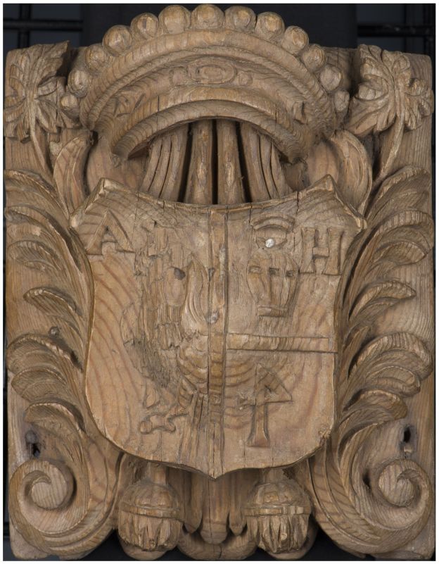 Onderscheidingsteken, blazoen, afbeelding van een (adellijk, stedelijk, staats)wapen in een glas-in-loodraam, op een portret, op een kerkgestoelte, op een rouwbord, op een wapenbord, op een grafzerk, op een door een gilde of broederschap geschonken object in de kerk. https://data.cultureelerfgoed.nl/term/id/cht/7c884119-cc2d-41db-8df7-a9e838d5ccca