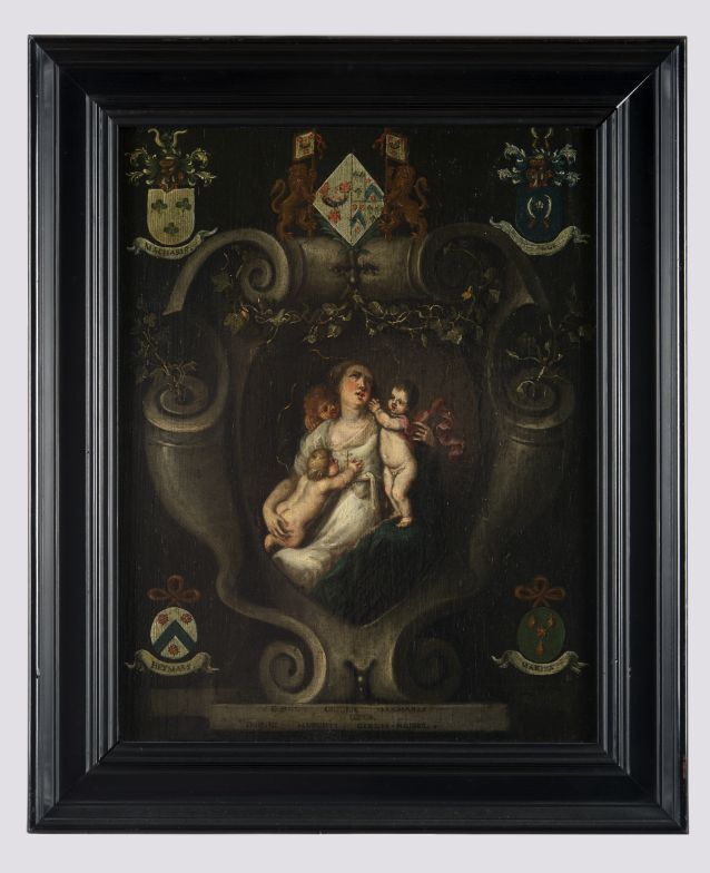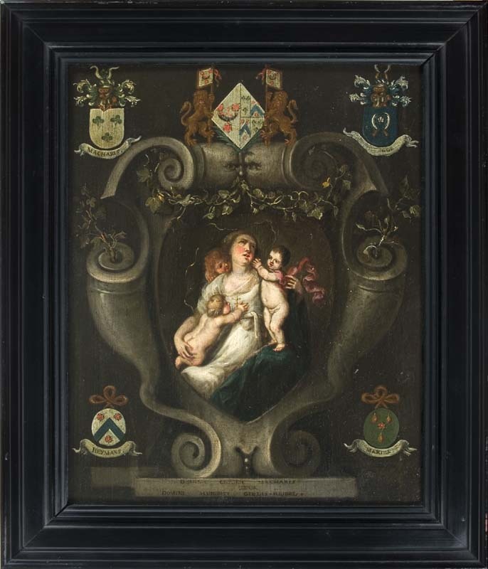 Portret van een vrouw uit geslacht Macharis met drie kinderen