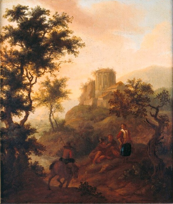Bergachtig landschap met ruïne