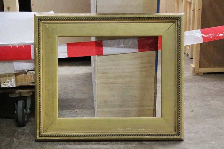 Lege lijst behorende bij schilderij van staand wit paard op stal