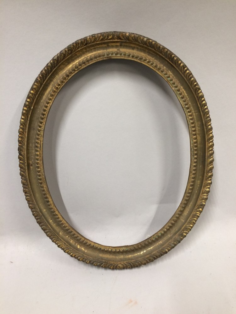 Een van twee ovale schilderijenlijst van eikenhout bedekt met verguld koper