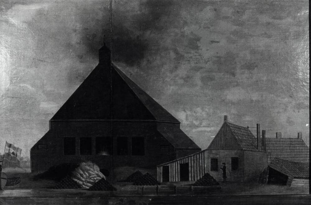 Gezicht op glasblazerij van familie van Sloterdijck, te Makkum