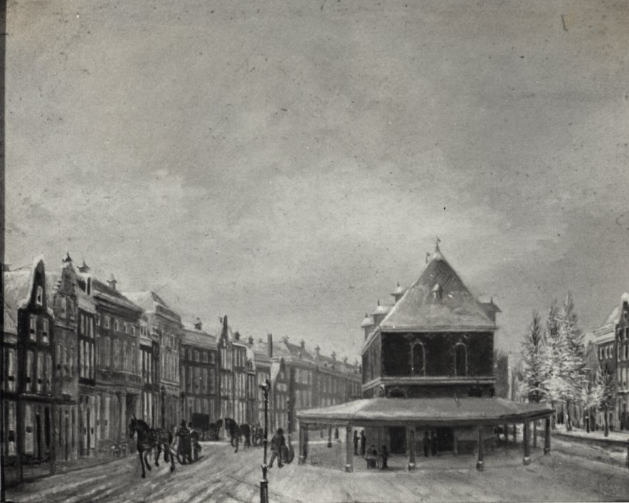 Gezicht vanaf Peperstraat op Nieuwestad te Leeuwarden, in de winter