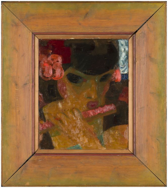 Portret van een vrouw met mirliton