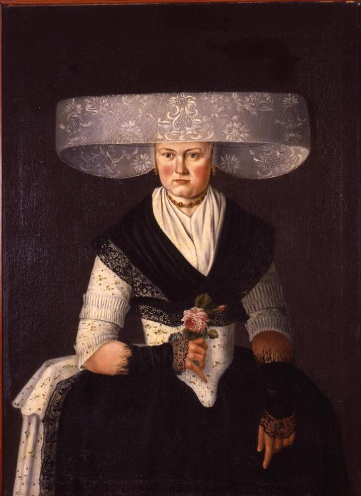 Portret van een onbekende vrouw in Fries kostuum
