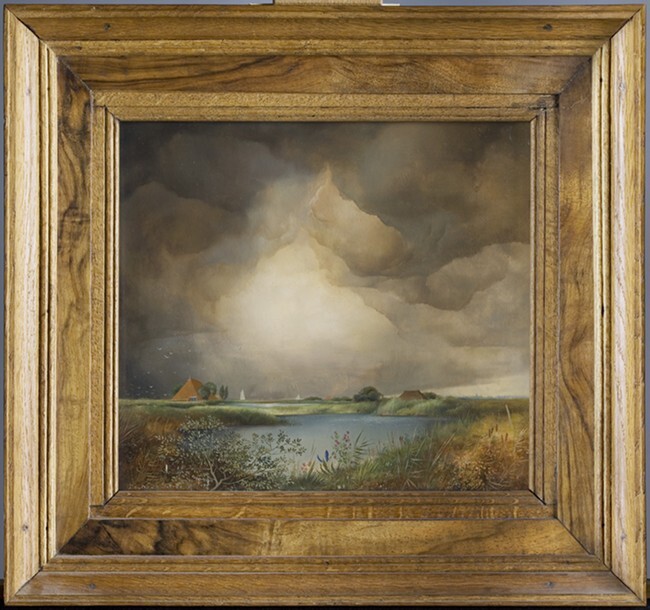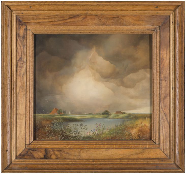 Fries waterlandschap met grote wolkenpartij boven boerderij