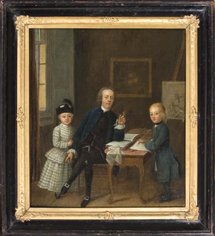 Familieportret van Sytse Roelofs Nicolai en zijn kinderen Roelof en Jan Hendrik
