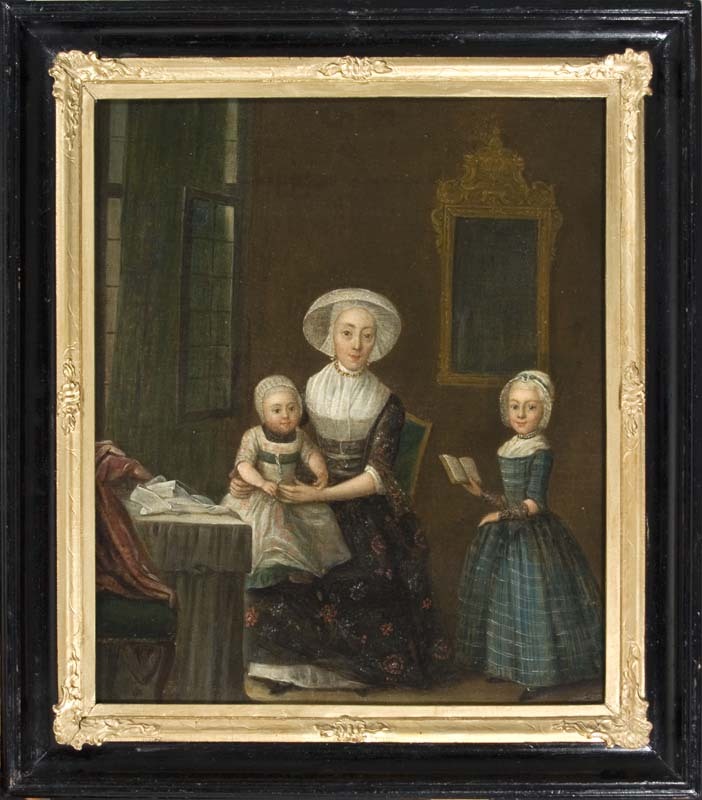 Familieportret van Neeltje Zijlstra en haar kinderen Hanna en Anna Nicolai