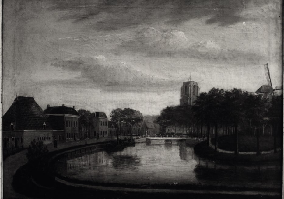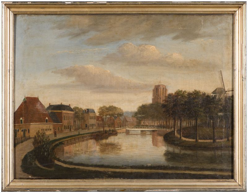 Gezicht op de Vrouwepoortsbrug met op achtergrond de Oldehove