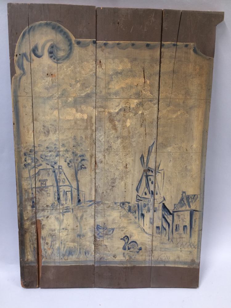 Landschap met windmolen aan een vaart waarin eend en roeibootje