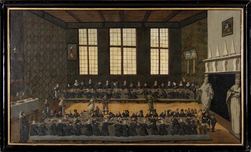 Huwelijksmaal ter gelegenheid van het huwelijk van Eraert van Pipenpoy met Jel van Liauckema in de grote zaal van Liauckemastate te Sexbierum