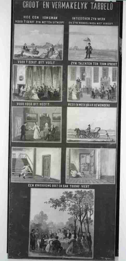 Huwelijkstableau in 9 taferelen ter gelegenheid van het huwelijk van Jhr. Hora Siccama en mej. A.C. Sickenga