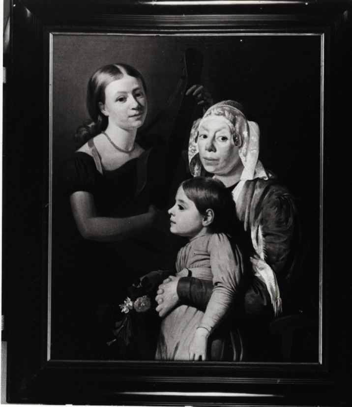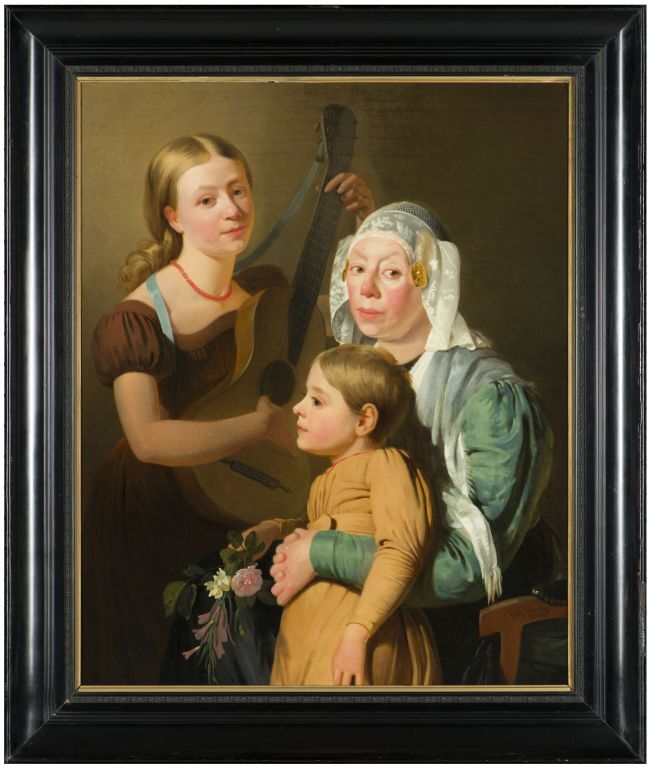 Klaaske Menalda-Belkmeer in Fries kostuum met dochters Dieuwke en Boukje